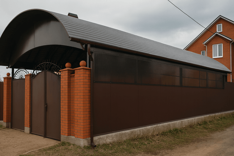 Навесы из металлопрофиля отличаются прочностью, долговечностью и простотой монтажа. Для обеспечения надёжной эксплуатации конструкция подбирается с учётом квадратуры участка, типа основания и предполагаемой нагрузки.
