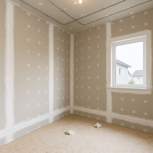 Между слоями устанавливается минеральная вата или другой изолирующий материал. - Отделка стыков и подготовка под чистовую отделку